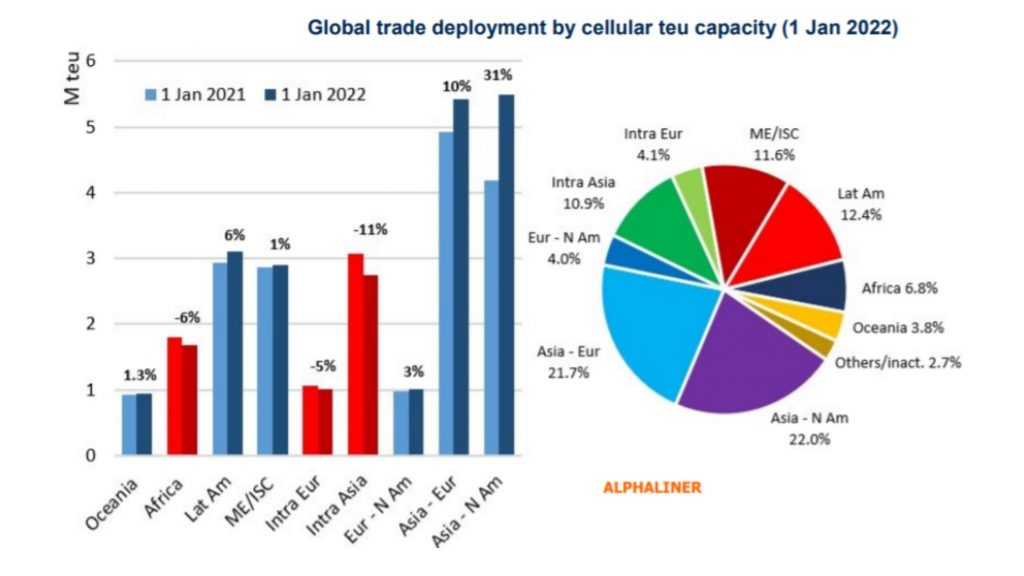 At the start of this year, 22% of the total cellular fleet was deployed between Asia and North America, up from 17.5% on 1 January 2021.