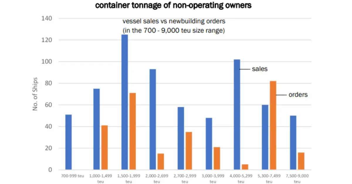Since 1 November 2022, tonnage providers have lost 71 ships to end users. This concerns tonnage in the size range from 700 to 9,000 teu for a total capacity of 245,000 teu.