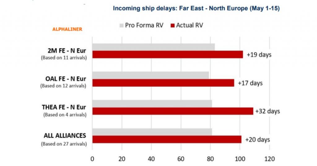 This means that they arrive on average 20 days late in China for their next round trip, forcing carriers to blank some sailings as there is no ship available.