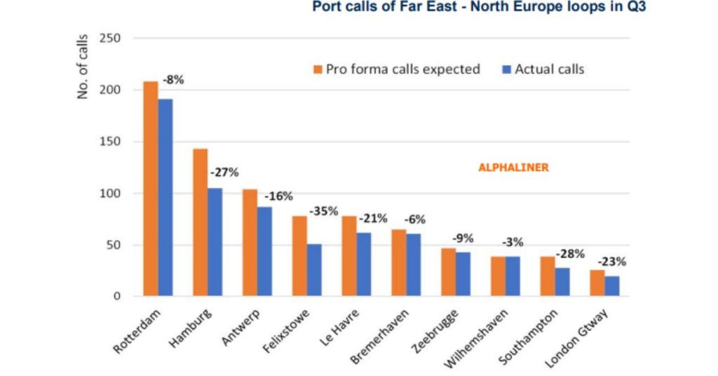 It is remarkable that Shanghai – North Europe spot freight rates also decreased by 48.5% in Q3 despite the fact that port congestion problems in Europe remain far from being resolved.
