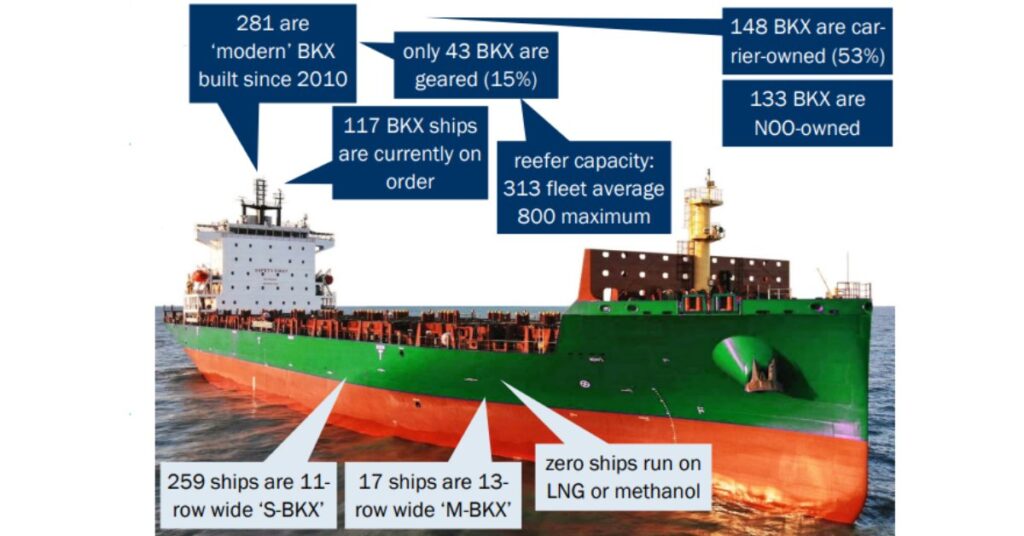 One container ship type that has gained increasing popularity in recent years is the “Bangkokmax” vessel, which typically boasts an intake from 1,700 to 1,900 teu. More recent iterations of the type – “maxi-Bangkokmax”– come with an intake capacities of up to 2,500 teu.